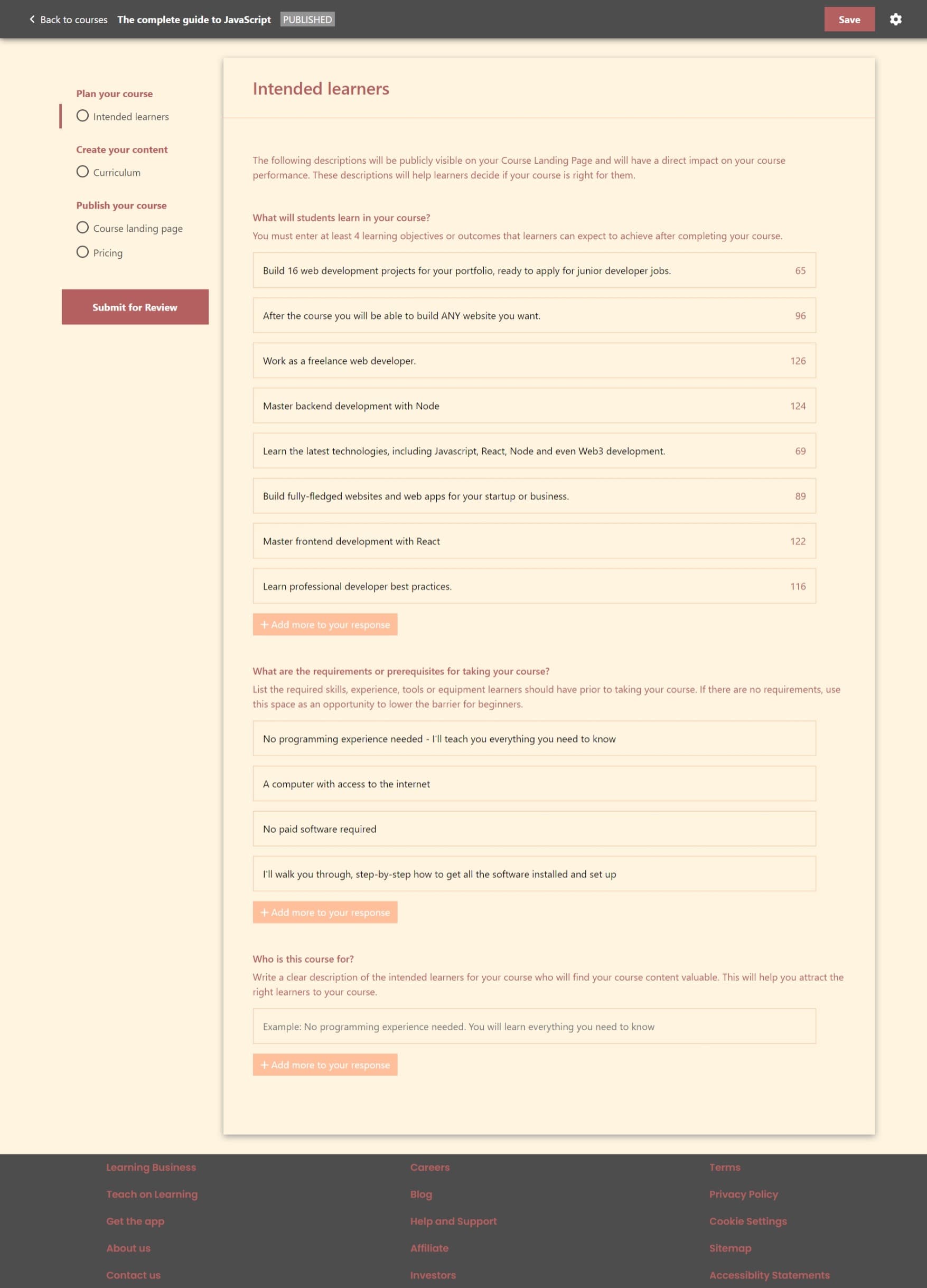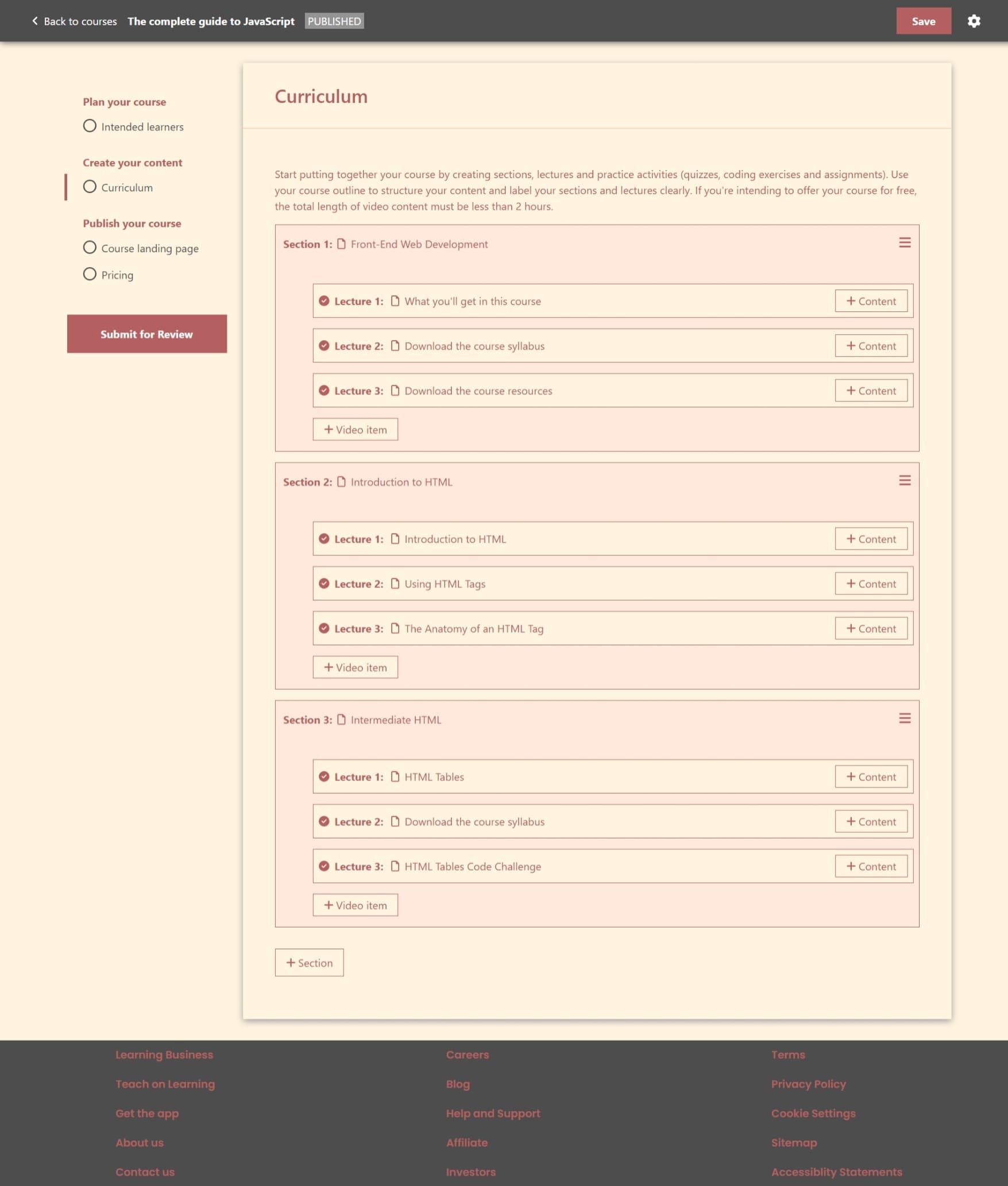 Structuring course content (sections & lectures)